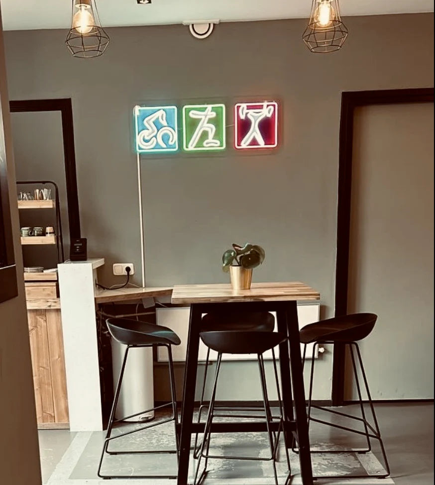 For mitt nye treningssenter i Breda havnet jeg hos Neonsfeer. Fantastisk hjelp, og sammen kom vi frem til dette unike designet. Kjempefornøyd med resultatet