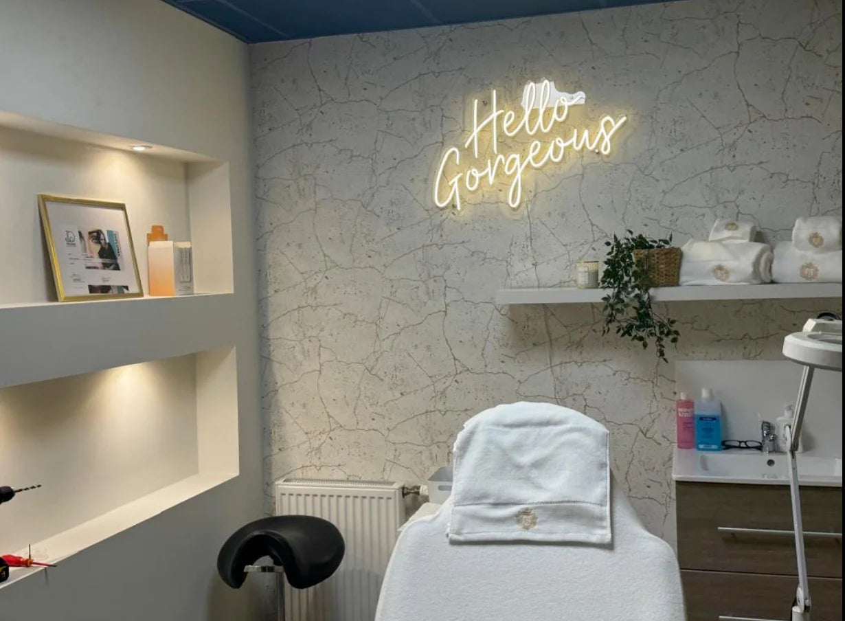 Kjøpte et veldig fint neonskilt til salongen vår! Topp kvalitet og superenkelt å henge opp. Vi er veldig fornøyde med resultatet – det lyser opp lokalet på en perfekt måte